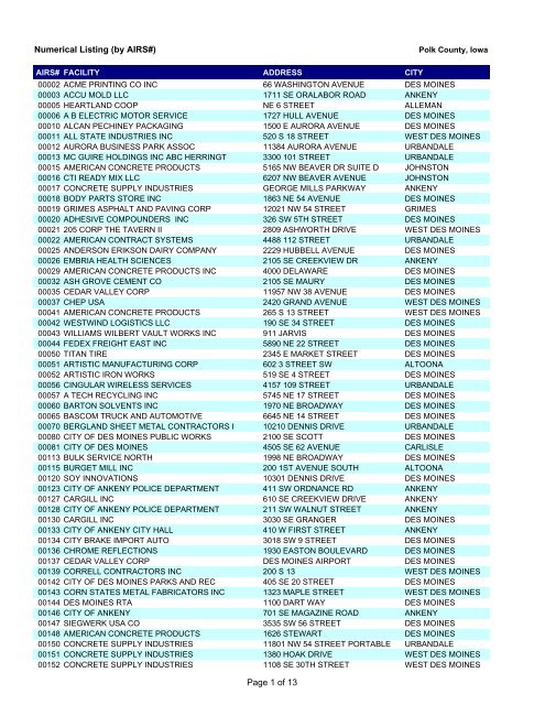 Numerical Listing By Airs Page 1 Of 13 Polk County Iowa
